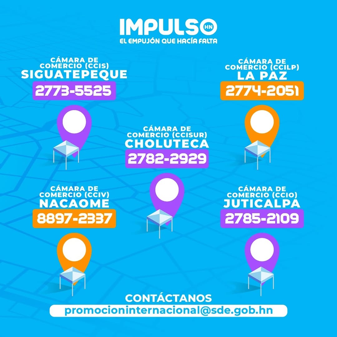 Ferias Locales Direcciones y Números de Teléfono Santa Cruz de YojoaDirección: Cámara de Comercio de Santa Cruz de Yojoa (CCISCY)Número: 9888-4208 Santa BárbaraDirección: Cámara de Comercio de Santa Bárbara (CCISBHN)Número: 9435-3955 SiguatepequeDirección: Cámara de Comercio de Siguatepeque (CCIS)Número: 2773-5525 Puerto CortésDirección: Cámara de Comercio de Puerto Cortes (CCIPCO)Número: 9705-3742 CholomaDirección: Cámara de Comercio de Choloma (CCICH)Número: 2634-1400 Santa Rosa de CopánDirección: Cámara de Comercio de Santa Rosa de Copán (CCICO)Número: 2662-0843 Copán RuinasDirección: Cámara de Comercio de Copán Ruinas (CCICO)Número: 9894-6881 La CeibaDirección: Cámara de Comercio de Atlántida (CCIA)Número: 9448-8096 TelaDirección: Cámara de Comercio de Tela (CCIT)Número: 9939-5695 El ProgresoDirección: Cámara de Comercio de El Progreso (CCIP)Número: 2647-4403 VillanuevaDirección: Cámara de Comercio de Villanueva (CCIV)Número: 3183-4050 TegucigalpaDirección: Centro Cívico Gubernamental (CCG)Número:2242-8359 San Lorenzo ValleDirección:Cámara de Comercio de Valle (CCIVA)Número: 8897-2337 Calendario de Ferias - Febrero