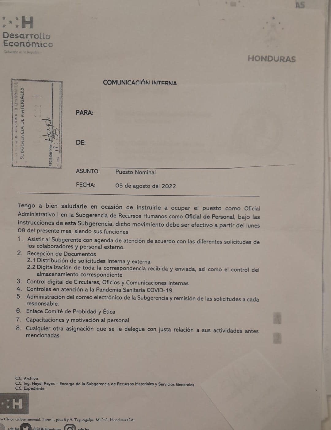 NOMBRAMIENTO DE PERSONAL DE LA SDE